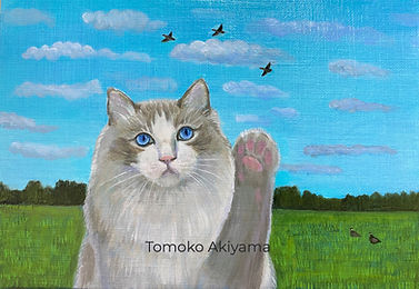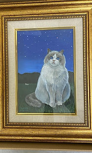 ご自宅の愛犬・愛猫・愛鳥さんを油絵や水彩画でお花や星空・青空を背景にした優しい情景の絵をお作りします。